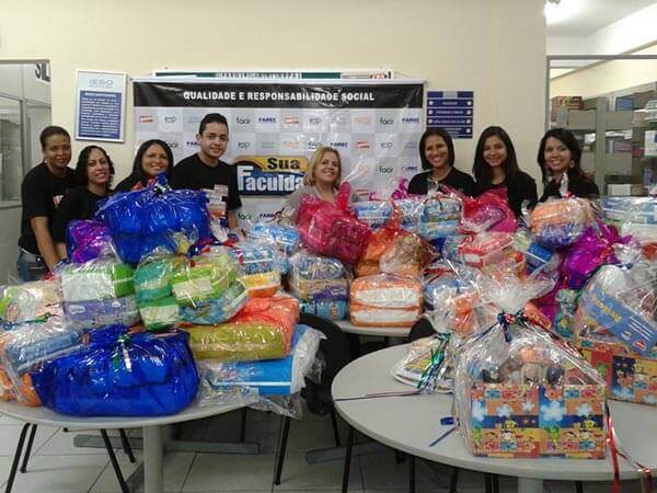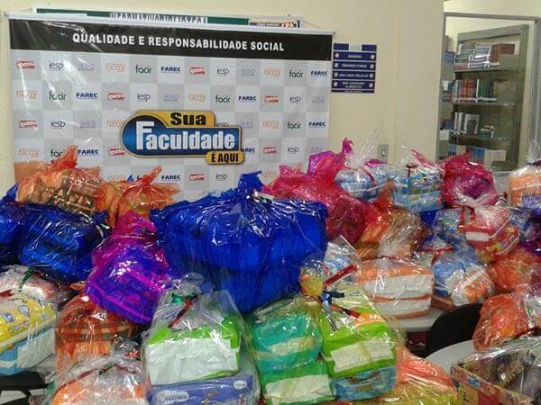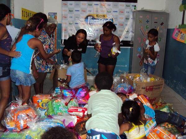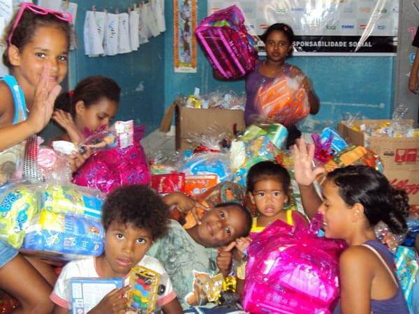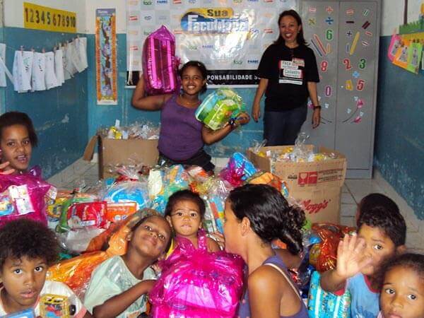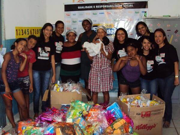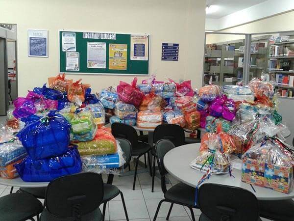 Doação dos funcionários de 300 Kits de bombons, biscoitos e pipocas.